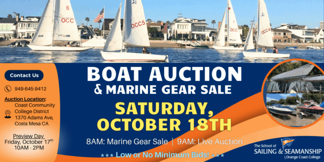 The live, in-person Marine Gear Sale & Boat Auction is on Saturday, October 18, 2025.